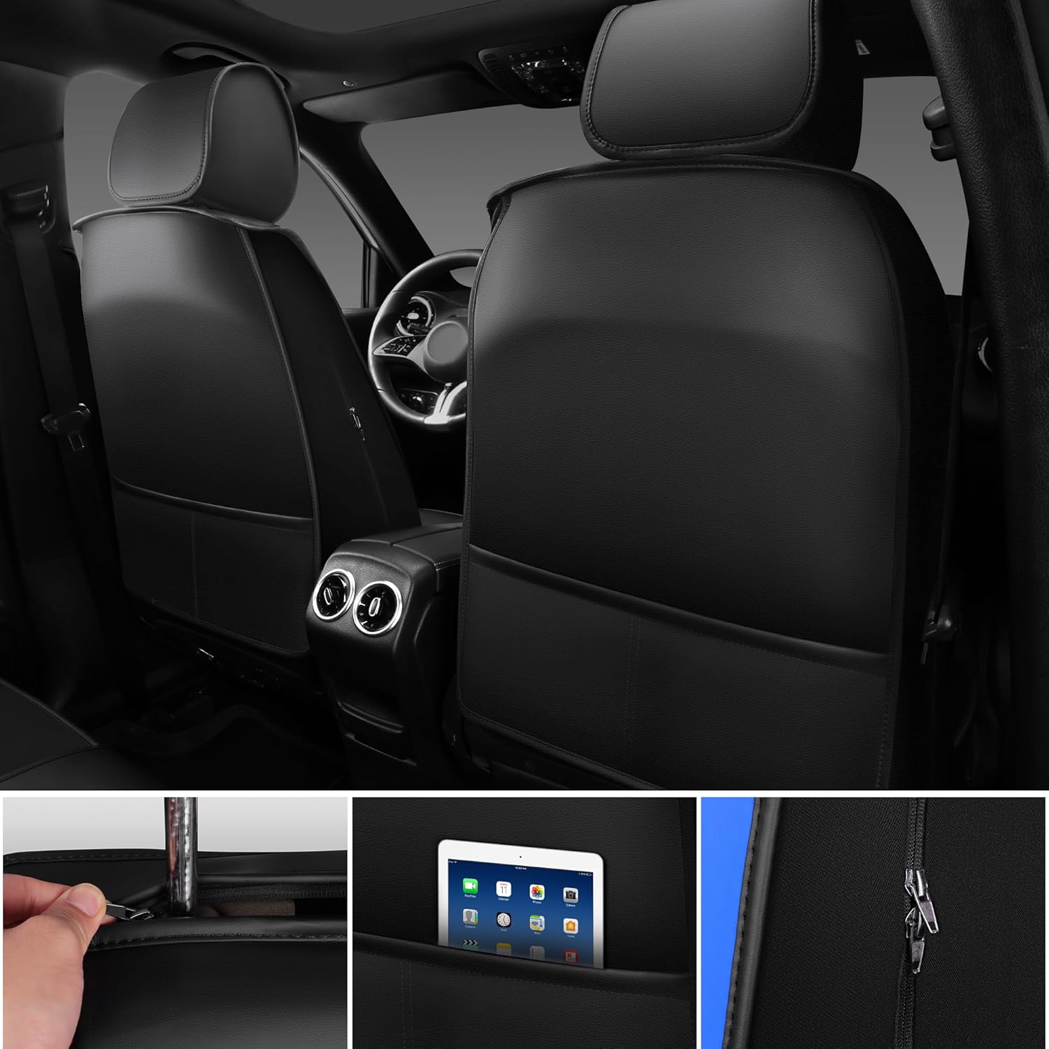 - AIRBAG ARMREST COMPATIBLE - Airbag compatible use ensure driving safety. Perfectly fit for most of vehicles with the seat cover easy installation design. If your car seat with armrests, don't worry, There are two zipper on both sides of the front seat covers, which is compatible with models with armrests on car seats. There are also two high-quality zippers in the middle of the rear seats, which allow for the use of the middle armrest