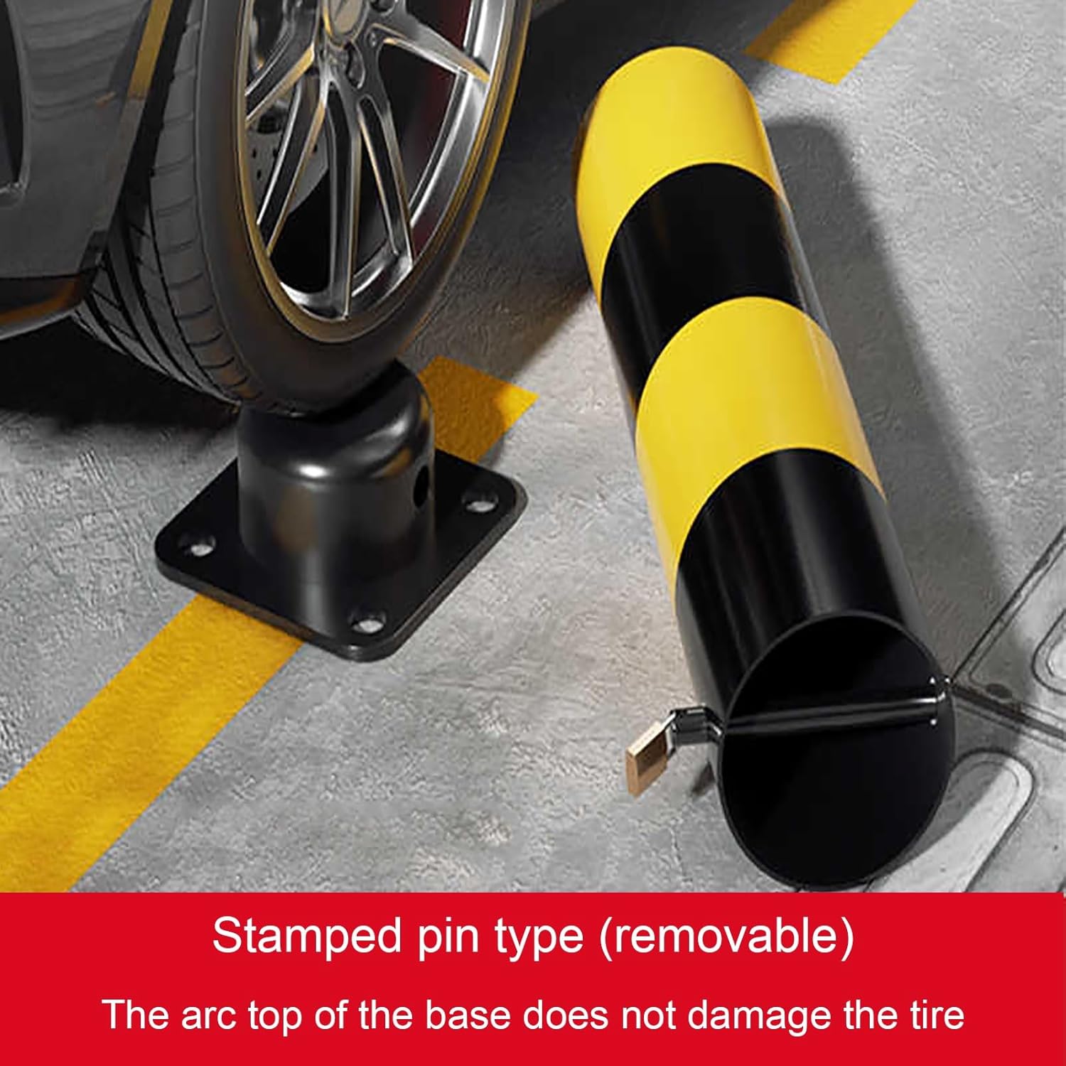 - [High brightness reflective]: The parking bollard is equipped with reflective tape for enhanced visibility in low light or nighttime conditions