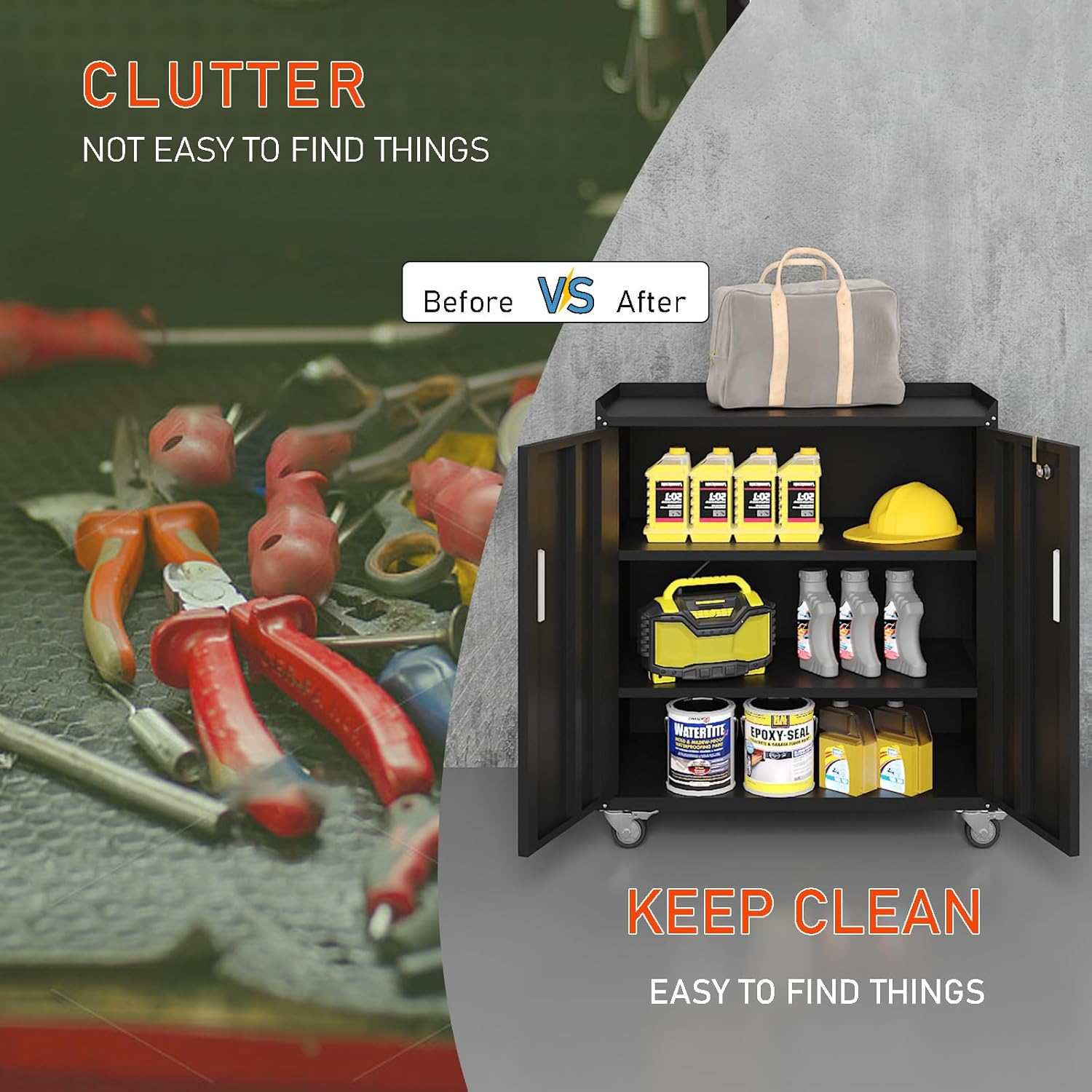 Metal Garage Storage Cabinet with Wheels ,Lockable Rolling Tool Chest on Wheels, Utility Cabinet for Home, Office, Garage and Workshop(Black)