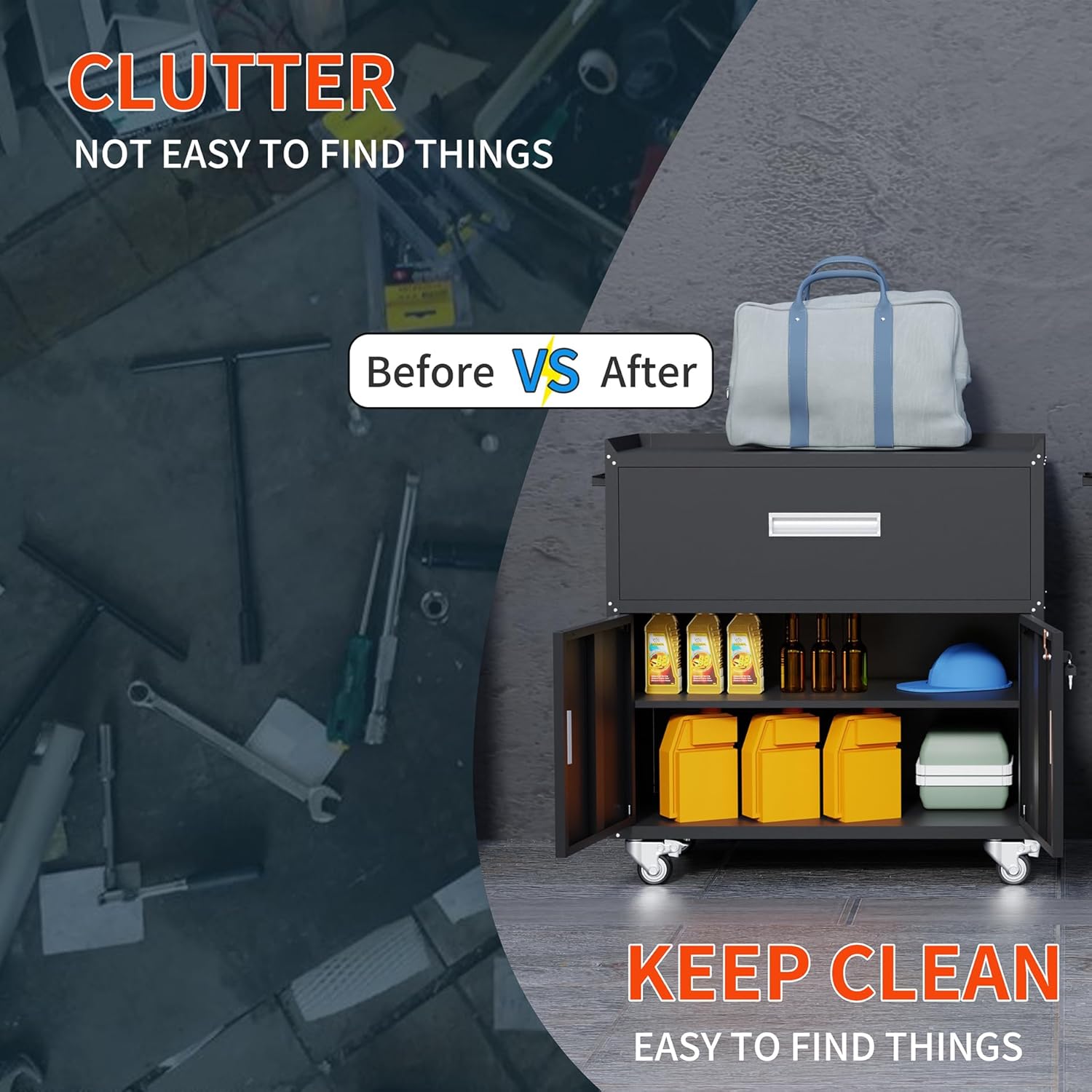 - Adjustable Shelves:Customize storage space for tools and equipment.;Maximize organization in your garage