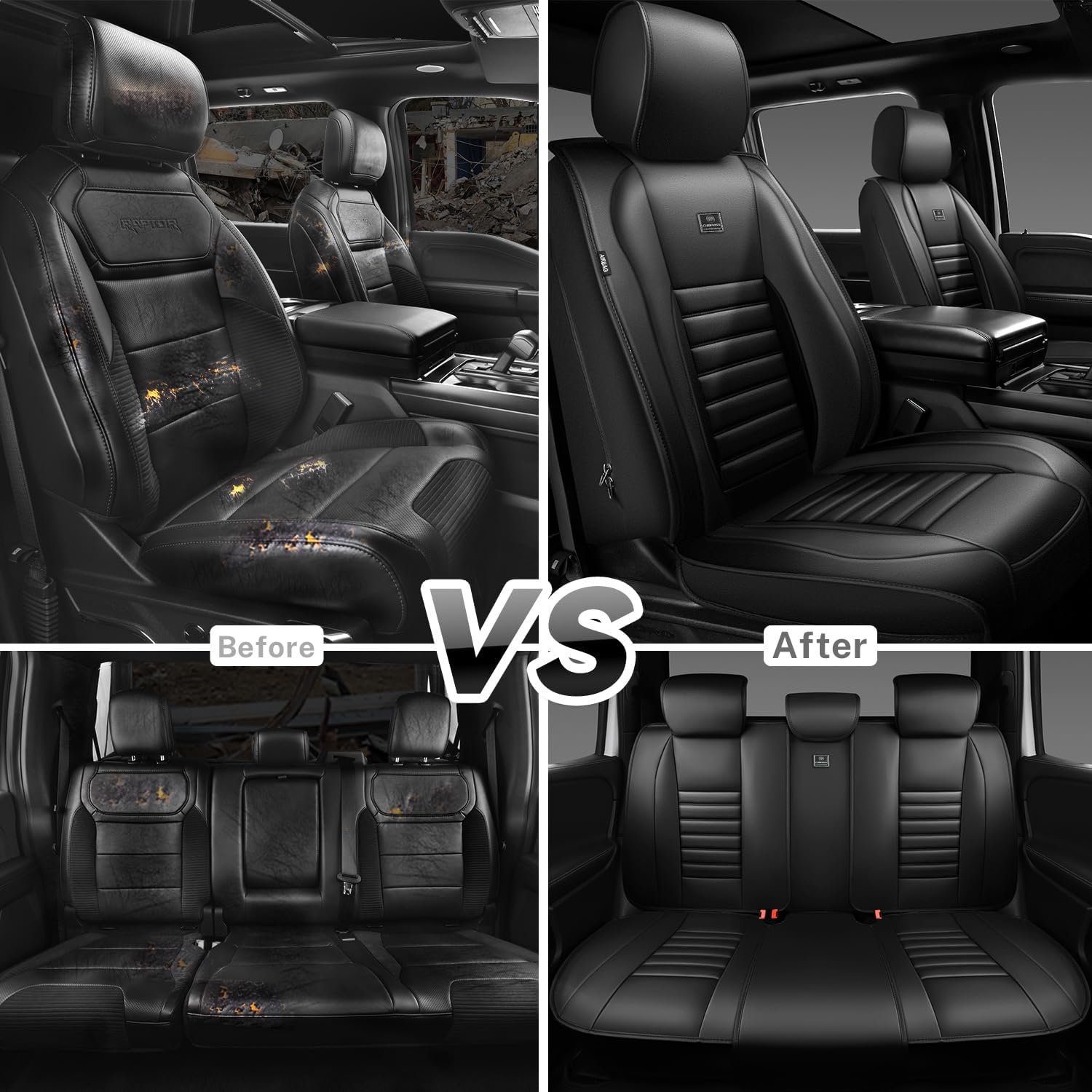 - NAPPA LEATHER SEAT COVERS - The car seat covers full set made of high-grade nappa leather lined sponge, which no odor and comfortable touch, 3D full coverage protector. Breathable, waterproof, wear-resistant, easy to clean and suitable for all seasons. Seat protector features a full wrap-around design that protects car seats from spills, dust, scratches, pet hairs and harmful UV rays