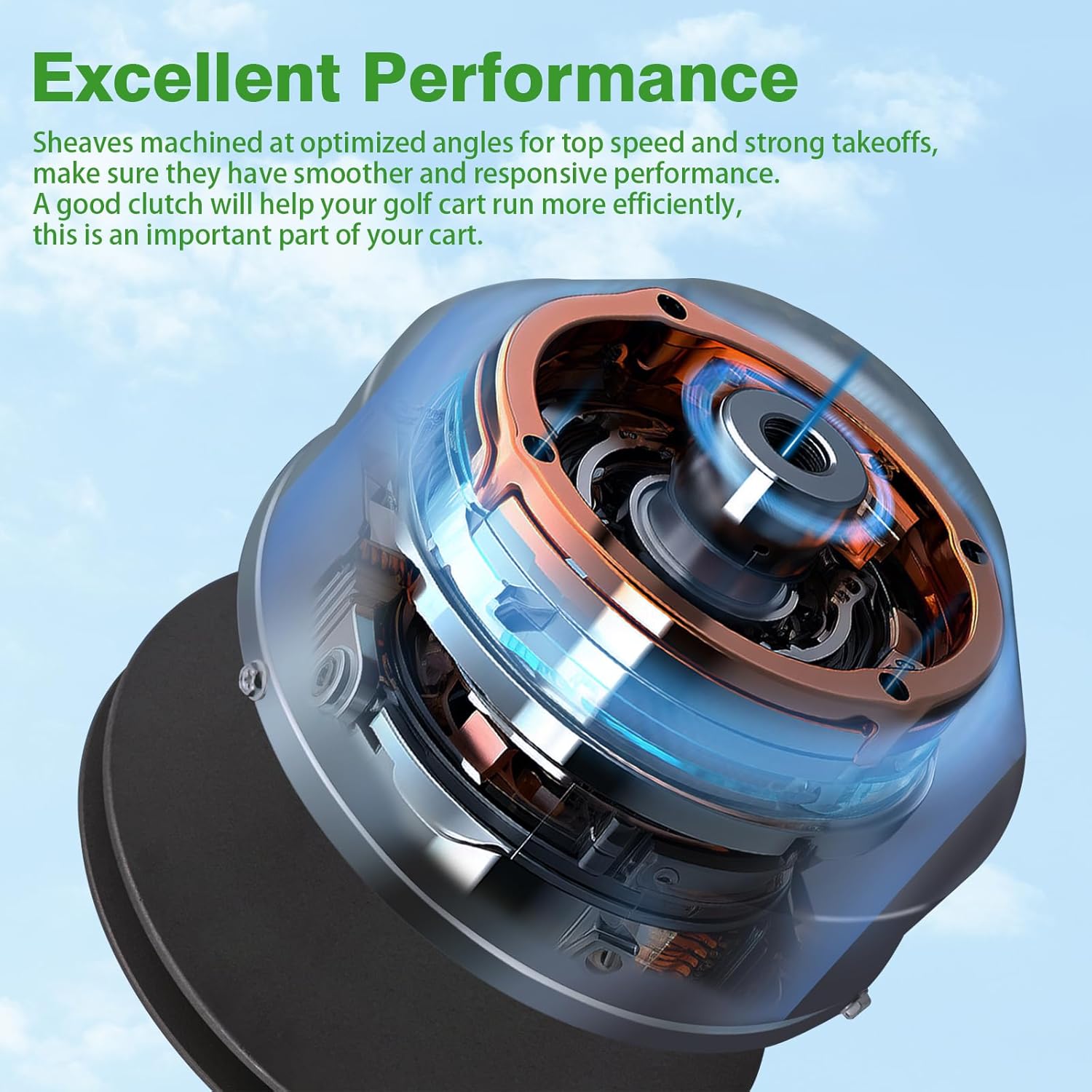 - Durable Die-Cast Aluminum Construction: Crafted From A Durable Cast Iron And Aluminum Alloy, This Golf Cart Clutch Replacement Features High-Pressure Casting That Increases Its Durability And Lifespan While Providing Excellent Heat Dissipation Capabilities.