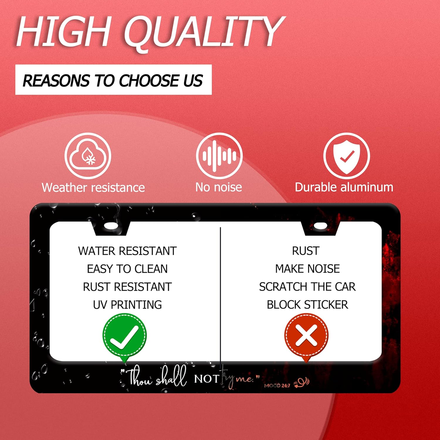 Thou Shall Not Try Me Mood 24:7 License Plate Frame Funny Text License Plate Frames Stainless Steel Accessories Cars Decor with 2 Holes and Screws Fits Standard Us Ca Vehicles Holder 12.2 X 6 Inch