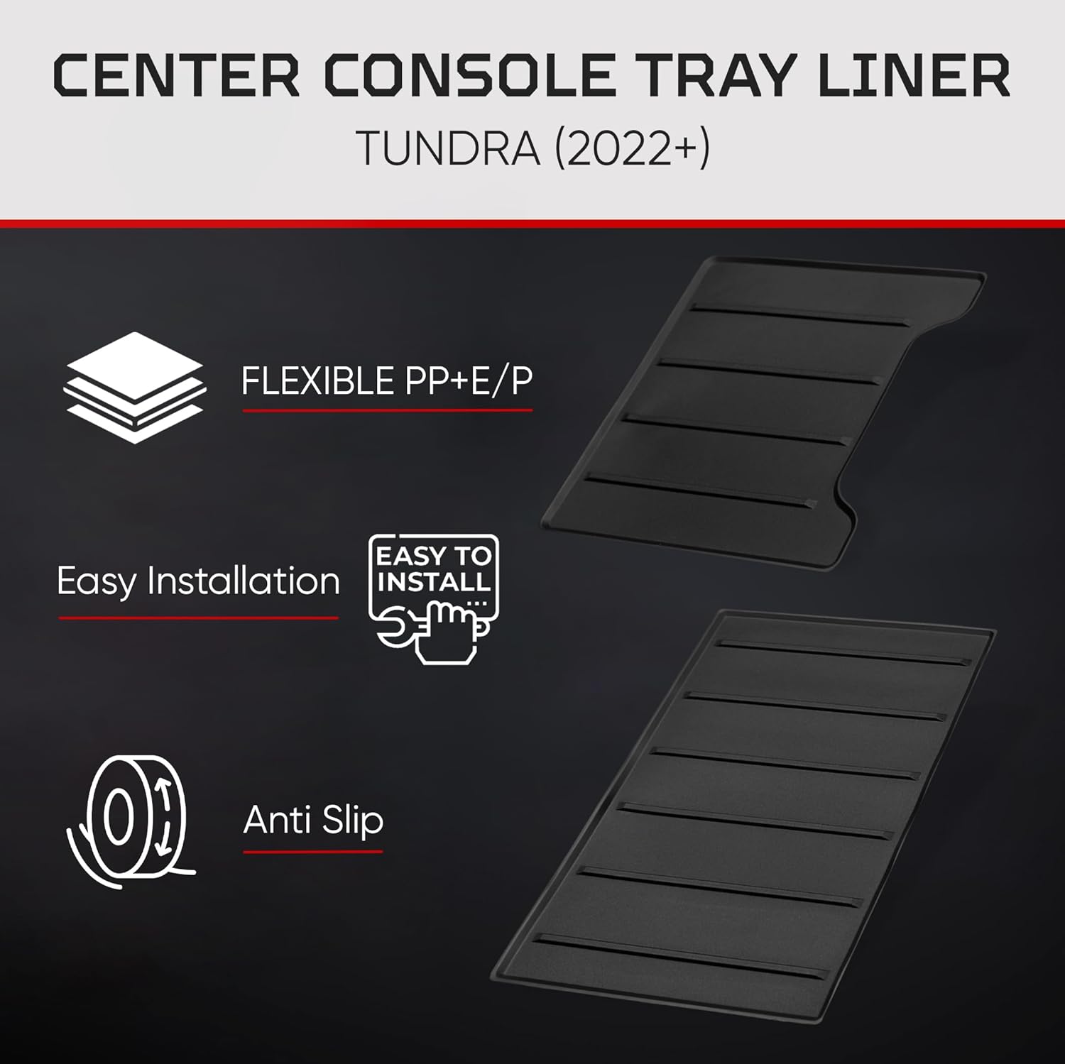 - SEAMLESS OEM-STYLE INTEGRATION: Designed to match Vehicleโs factory trays, these center console tray liners offer a sleek, factory-installed look without bulky aftermarket add-ons. Their precision-molded fit enhances the truck center console while complementing your Tundra and Sequoia accessories perfectly.