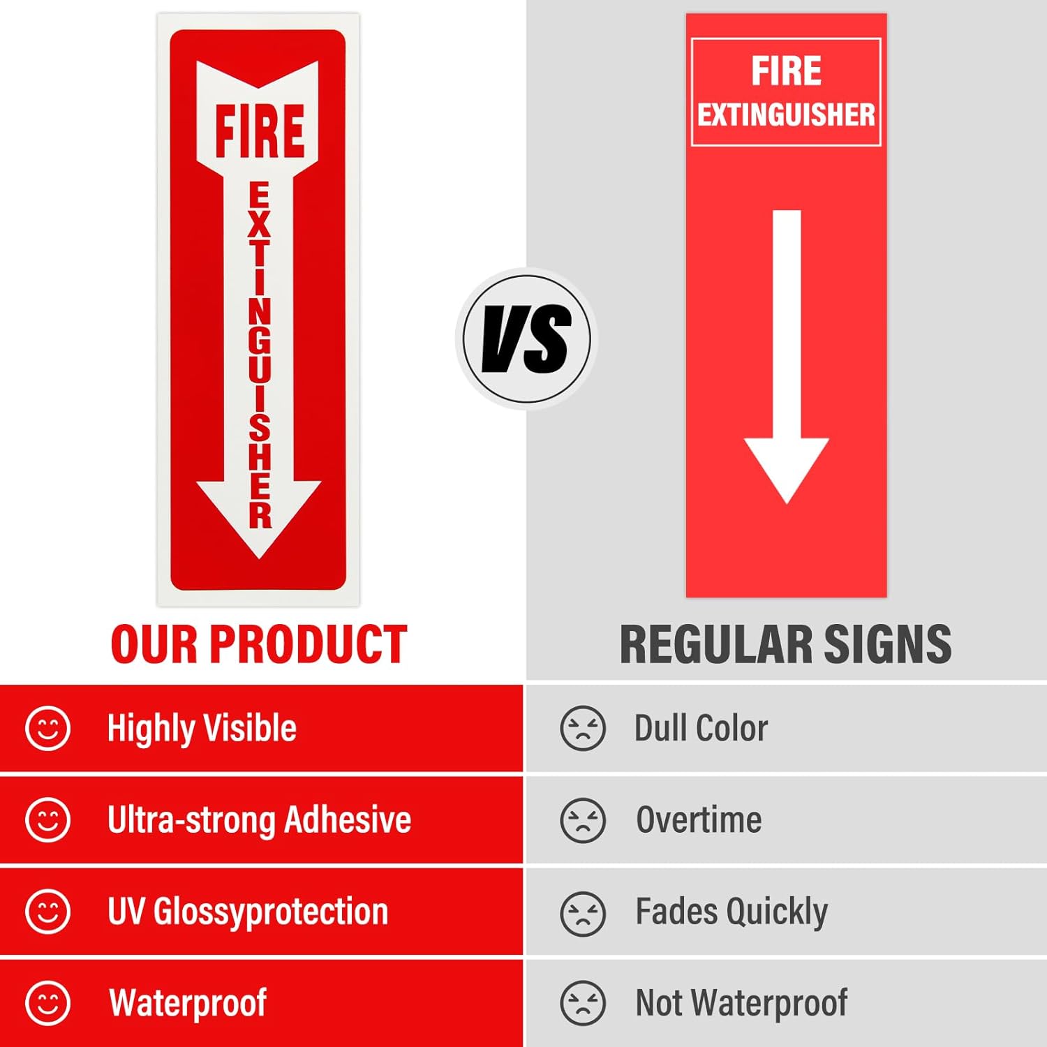 - Reliable Material: fire extinguisher signs are made of Polystyrene Plastic material, printed with weatherproof, scratch and UV resistant signs, that won't fade easily and can last for a long time both indoors and outdoors