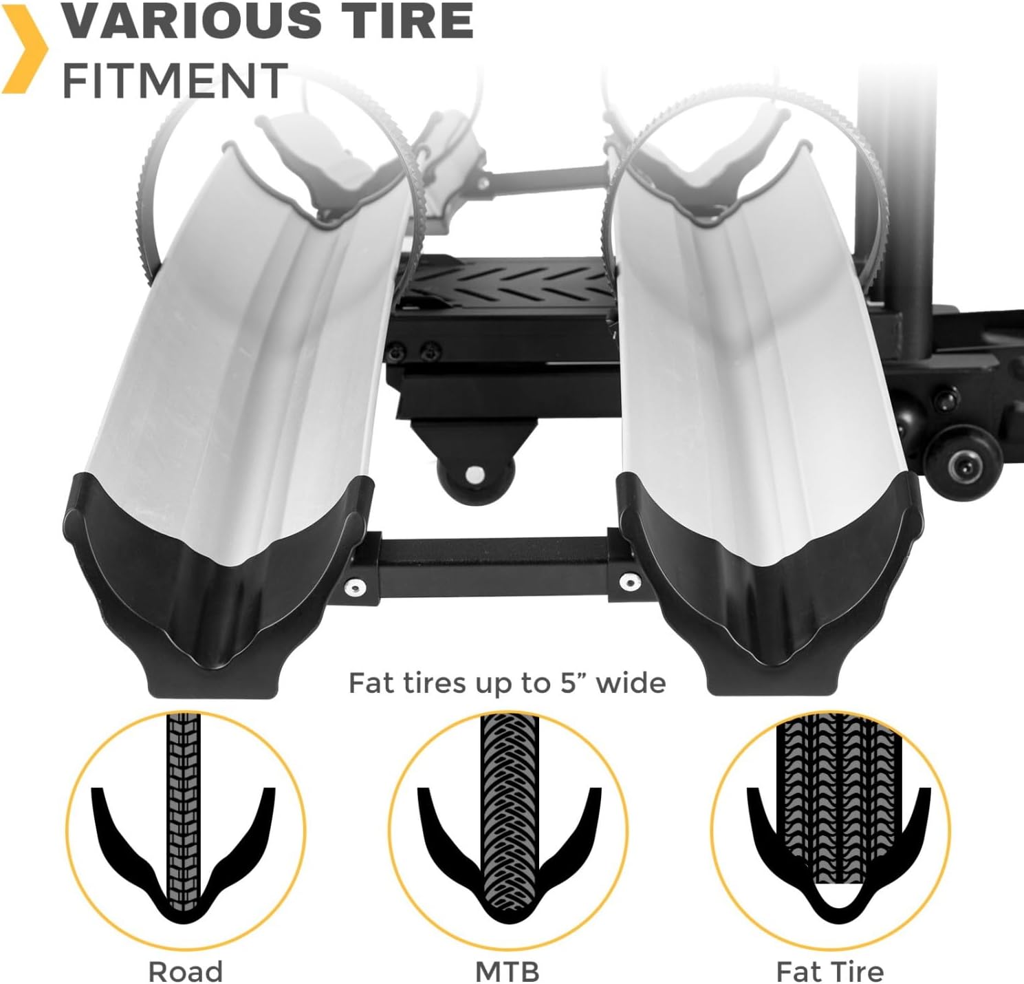 - Universal Compatibility – Fits most 2-inch hitch receivers and works with electric, mountain, and fat-tire bikes (up to 5" tires).