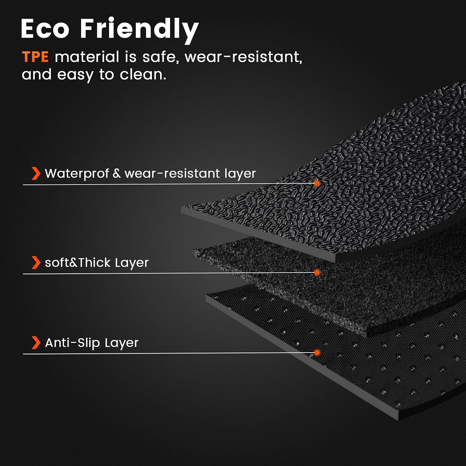 - ăHeavy-Duty & Odorlessă Upgraded eco-friendly TPE retains flexibility in -40°F~200°F, zero chemical smell even in hot weather. 3X more abrasion-resistant than rubber mats.3D anti-slip texture, anti-slip, anti-scratch, waterproof, dustproof.