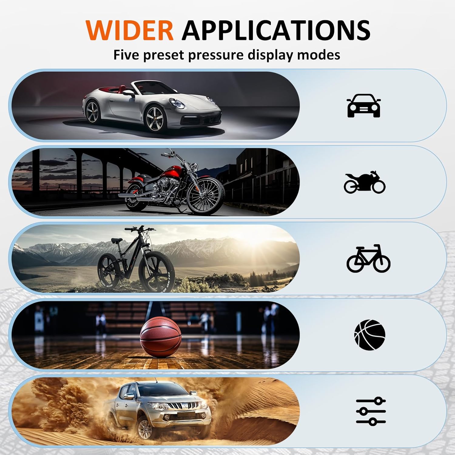- ✅【5 Versatile Inflation Modes】: Bestview portable air compressor provides 5 preset modes: car, bicycle, motorcycle, ball and custom mode. The custom mode can also set the pressure value of 3-150PSI according to the inflated object, and the intuitive display allows you to easily switch settings to meet various inflation needs. It is very suitable for inflating a variety of items, including car tires, bicycle tires and sports equipment, and is a must-have product for daily life and travel.