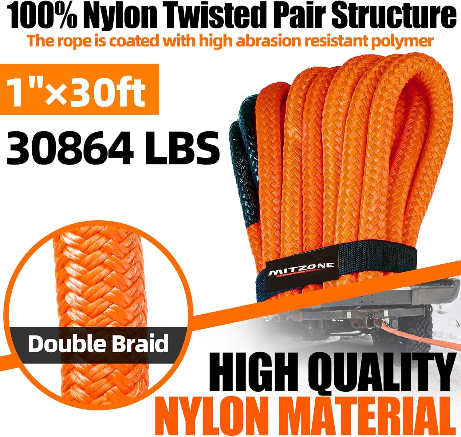 - Double Diamond Braid and Vinyl Polymer Coating: The double braid shell of our recovery strap is infused with a vinyl polymer coating, offering exceptional waterproof and UV-resistant properties. Withstanding temperatures ranging from -40°F to 215°F, it ensures durability in extreme conditions. Additionally, both ends of the recovery straps heavy duty feature polyurethane coatings for increased wear resistance, corrosion protection, and easy cleaning