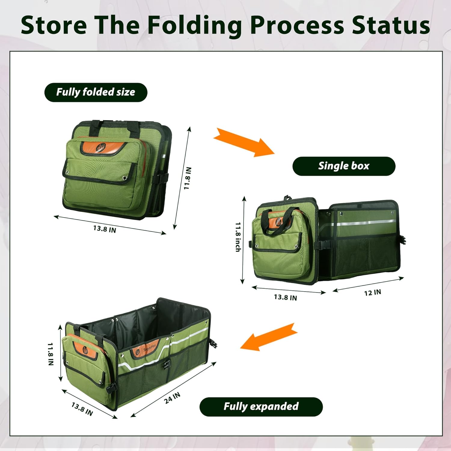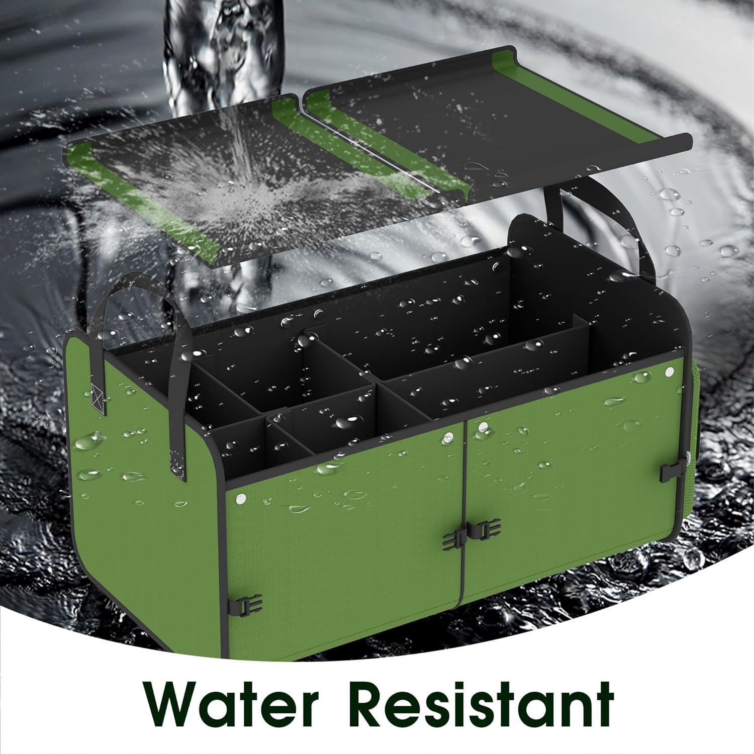 Foldable Waterproof Car Organizer with Non-Slip Traction Rope, 23.2”x13.8”x11.8” Heavy-Duty Trunk Organizer for SUV, Car Essentials List, Portable Vehicle Organizer,GREEN-M003