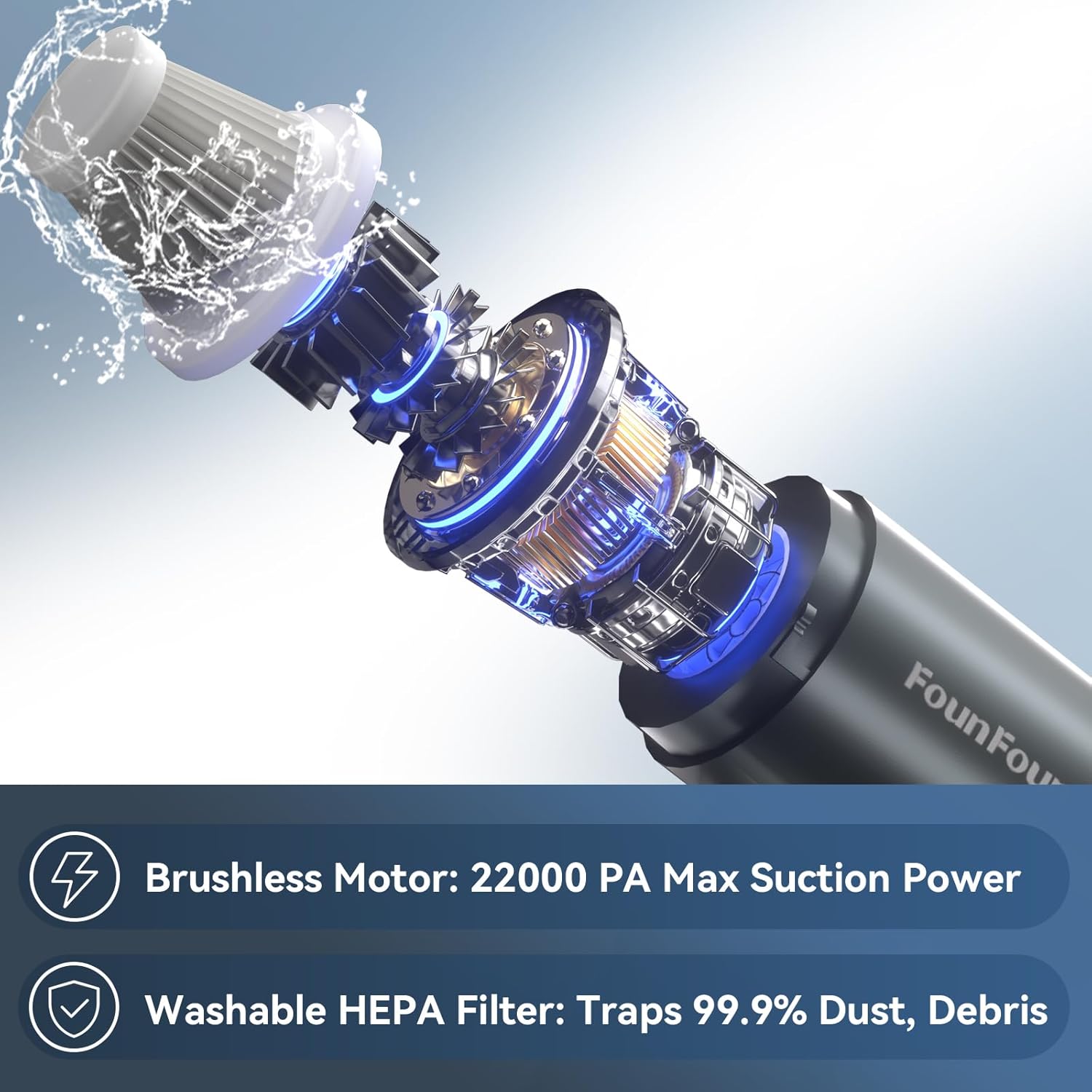 - Brushless Motor Handheld Vacuum : 22Kpa Max Suction for Pet Hair & Deep Debris ---- Equipped with an upgraded brushless motor, this vacuum delivers 22Kpa suction power to remove embedded pet hair from carpets, stubborn crumbs in car interiors, and even fine dust from sofas. Perfect for pet owners and car enthusiasts!