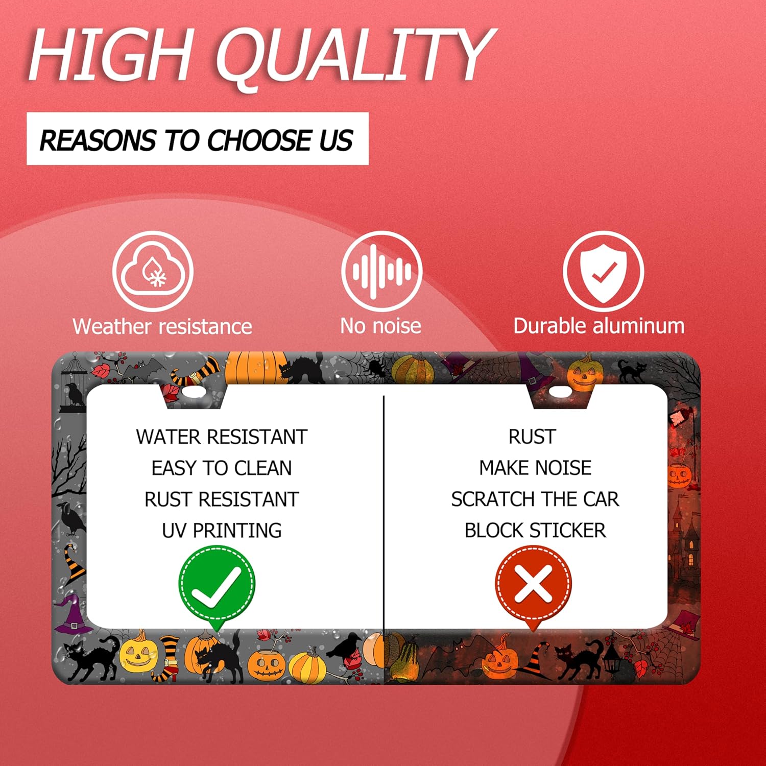 Halloween Pumpkin Cat License Plate Frame Bat Spider License Plate Holder Funny Stainless Steel Accessories Cars Decor with 2 Holes and Screws Fits Standard Us Ca Vehicles 12.2 X 6 Inch