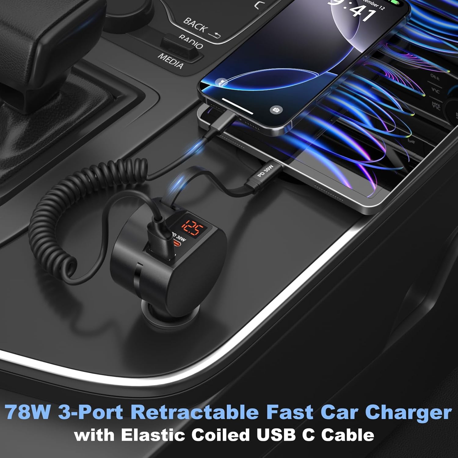 - 【What You Get】: 1 pack 78W 3-port retractable USB C car charger, 1 pack coiled USB C CarPlay cables, our friendly customer service and technical support. If you have any questions, please kindly contact us via Amazon, we would love to hear your thoughts.