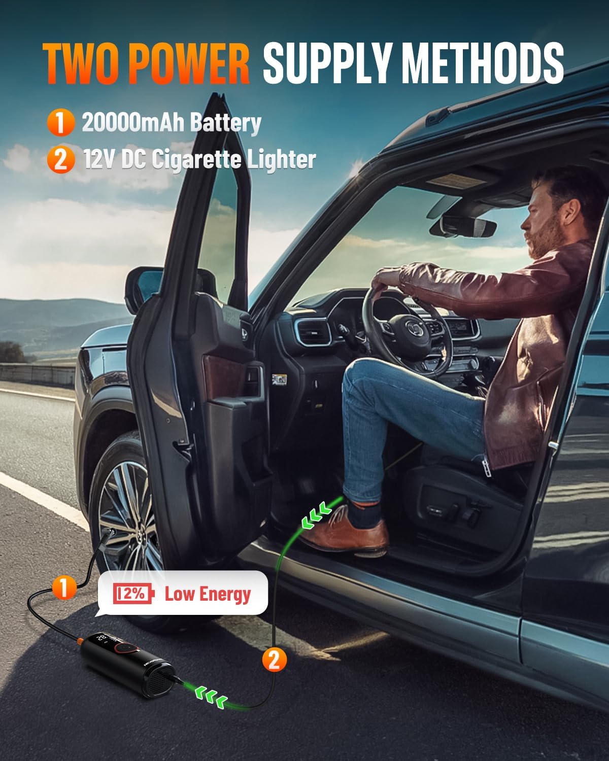 - 【Long-Lasting Battery】20000mAh lithium battery provides long battery life (3-4h charging via Type-C). Air pump for car tires as emergency power bank for phones/tablets with USB output. And cigarette lighter adapter provided.