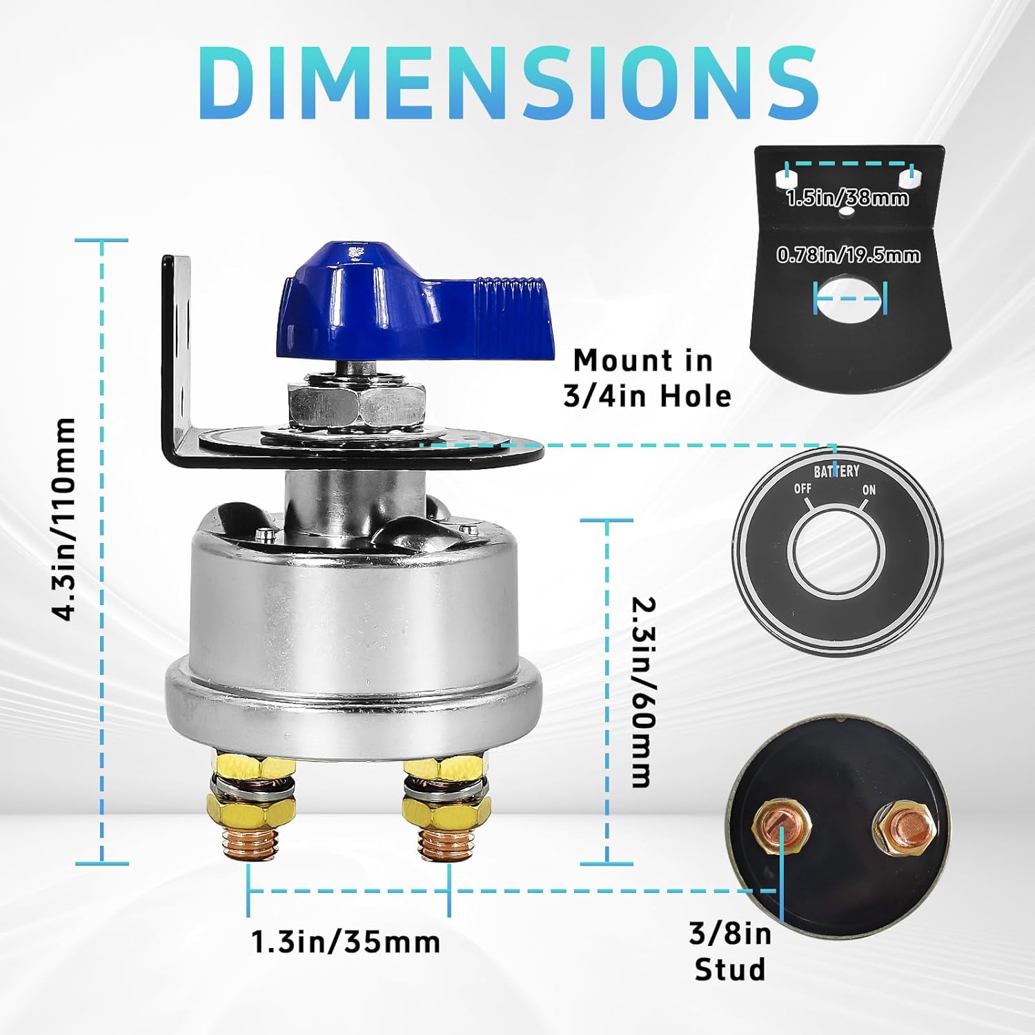 - Easy Installation:The battery isolator switch with a panel Features an ON/OFF indicator and audible "click" feedback for precise control.Pre-drilled holes and universal 12V compatibility allow setup in minutes—safeguard your electrical system effortlessly.