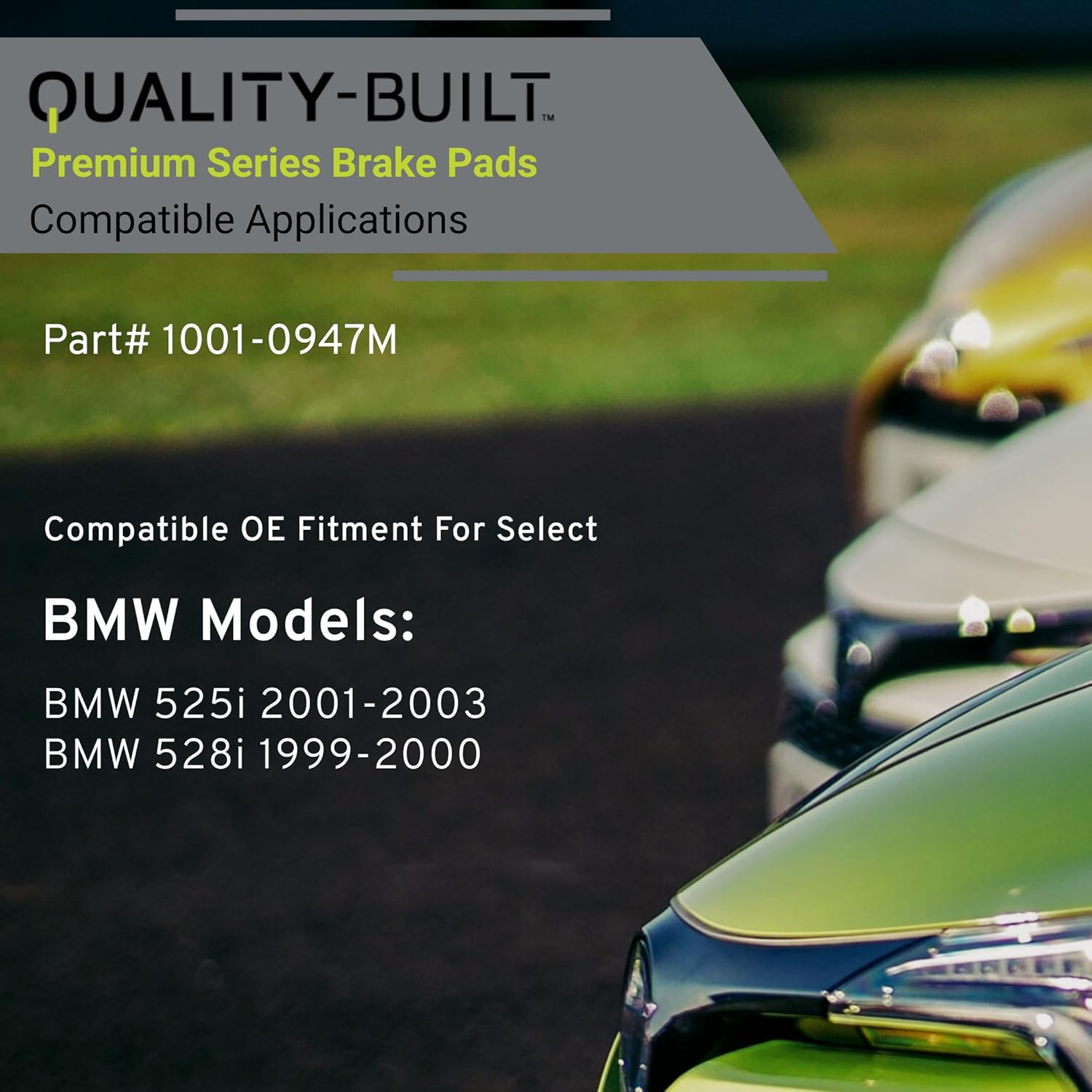 Premium Semi-Metallic Front Brake Pads (1001-0947M) Compatible with BMW 525i 2001-2003, BMW 528i 1999-2000