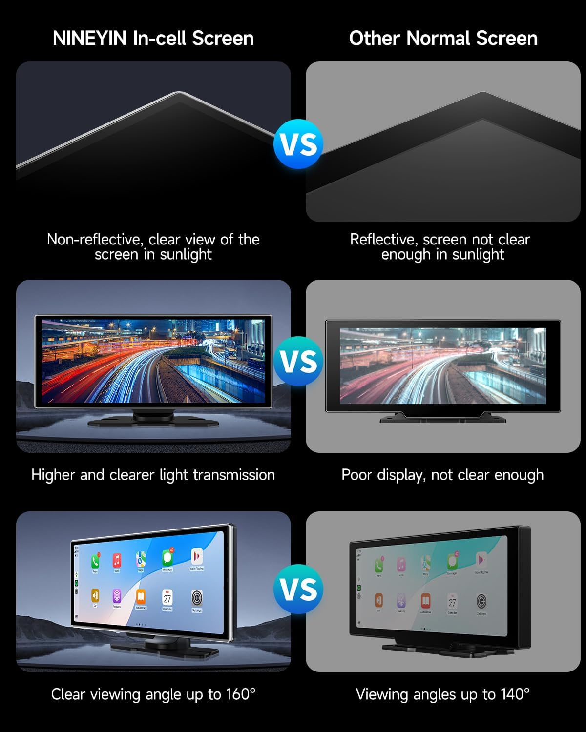 - 🚗【CarPlay/Android Auto/Voice Assistant】The portable carplay screen for car allows seamless wireless integration with both A-pple CarPlay and Android Auto. With Siri or Google Assistant, you can make calls, send messages, control media, and navigate effortlessly using voice commands—keeping your hands on the wheel and your focus on the road