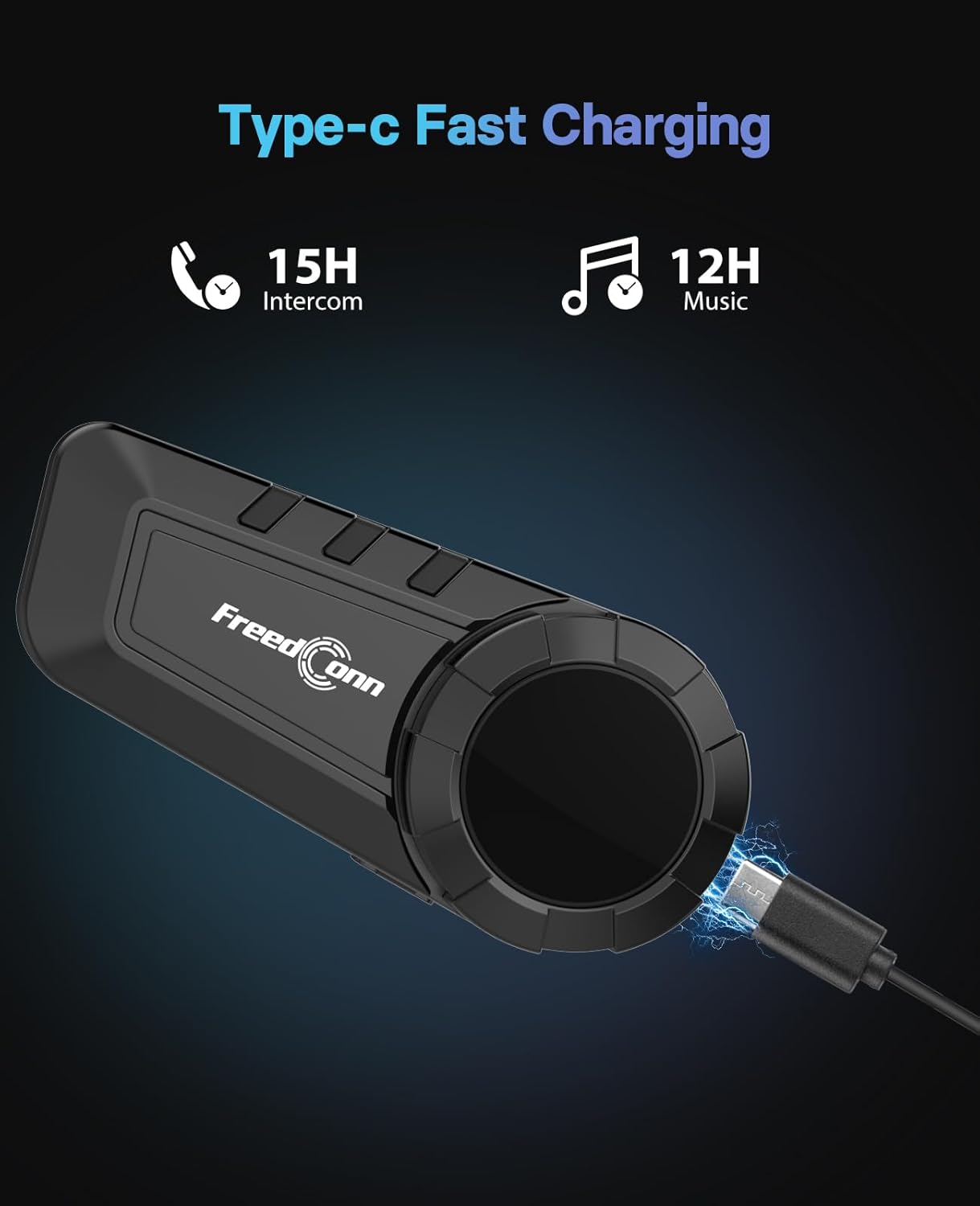 - 【6-Rider Conference Mode】This motorcycle helmet bluetooth headset delivers 1200m-range intercom. Share Spotify playlists between 2 headsets while coordinating with 6 additional riders via group channel