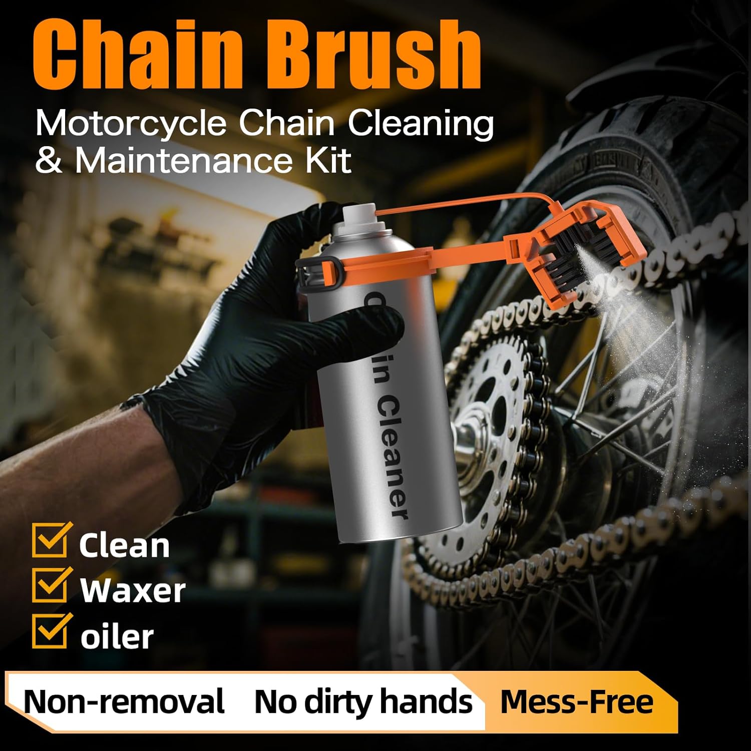 - Extend Chain Life with Easy Maintenance - This motorcycle chain cleaning kit simplifies routine care: use the brush for deep cleaning, then apply lube with the spray tool. Perfect for streetbikes, dirtbikes, and motorsports—keep your chain in top shape with less effort, whether you’re using chain cleaner or bike chain lube.