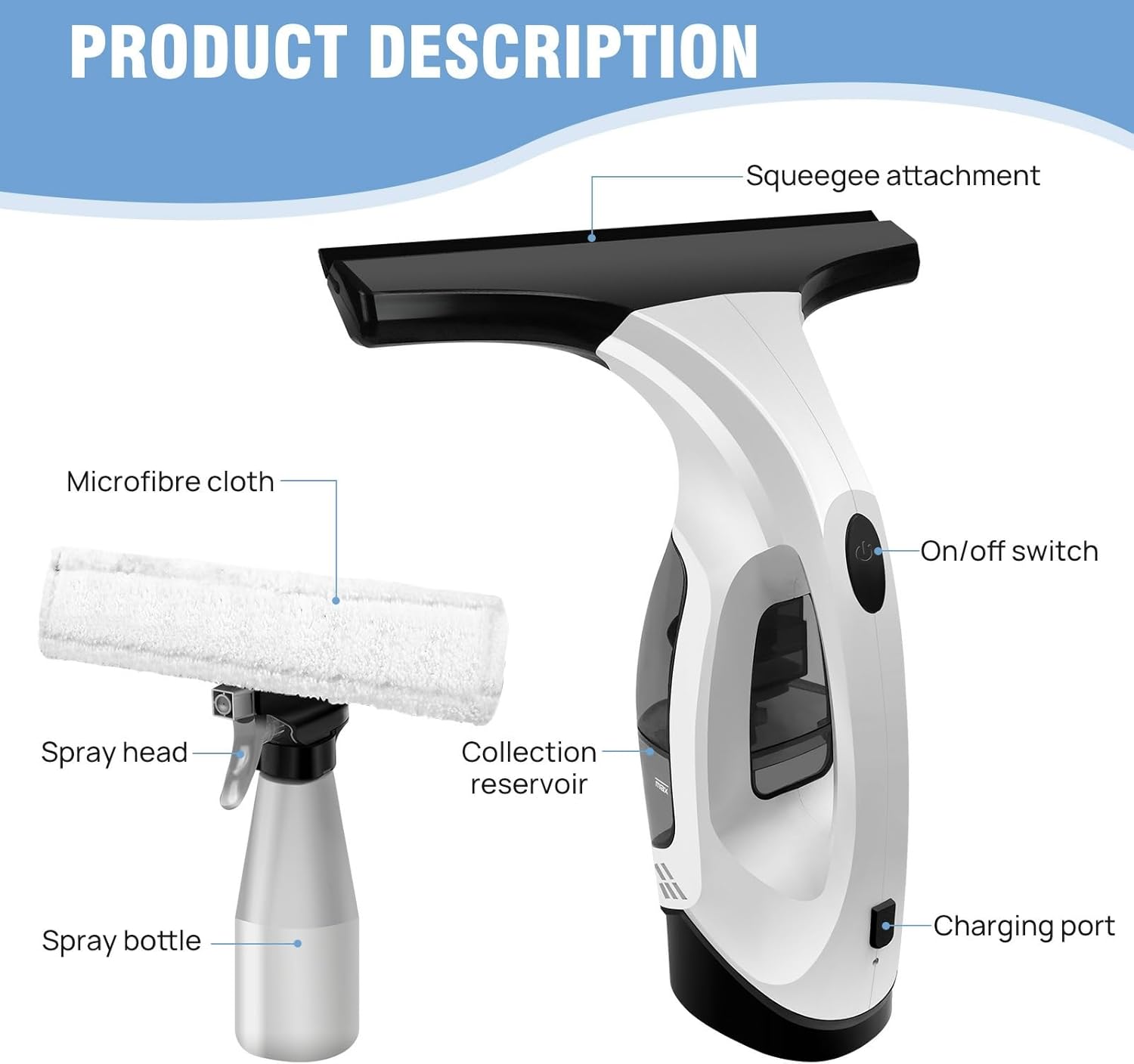 - EASY CLEANING**: Handheld glass vacuums are easy to use and quickly and effectively clean windows, tiles, mirrors, countertops and car windshields.