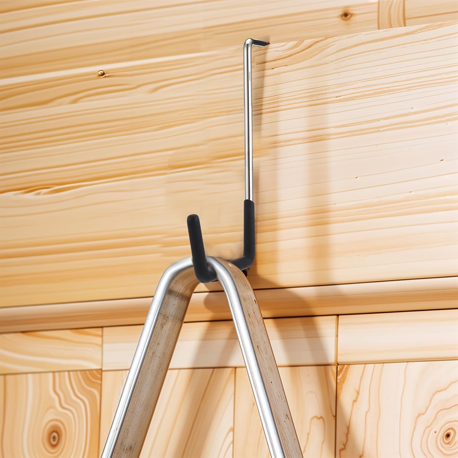 - [EAZY INSTALLATION] Our hook has a strong tough grip over rafters without the use of any screws. No holes need to be drilled. Move around easily as you wish. Save your time and ease your pain. Our sturdy hooks would easily fit your standard garage rafter board!
