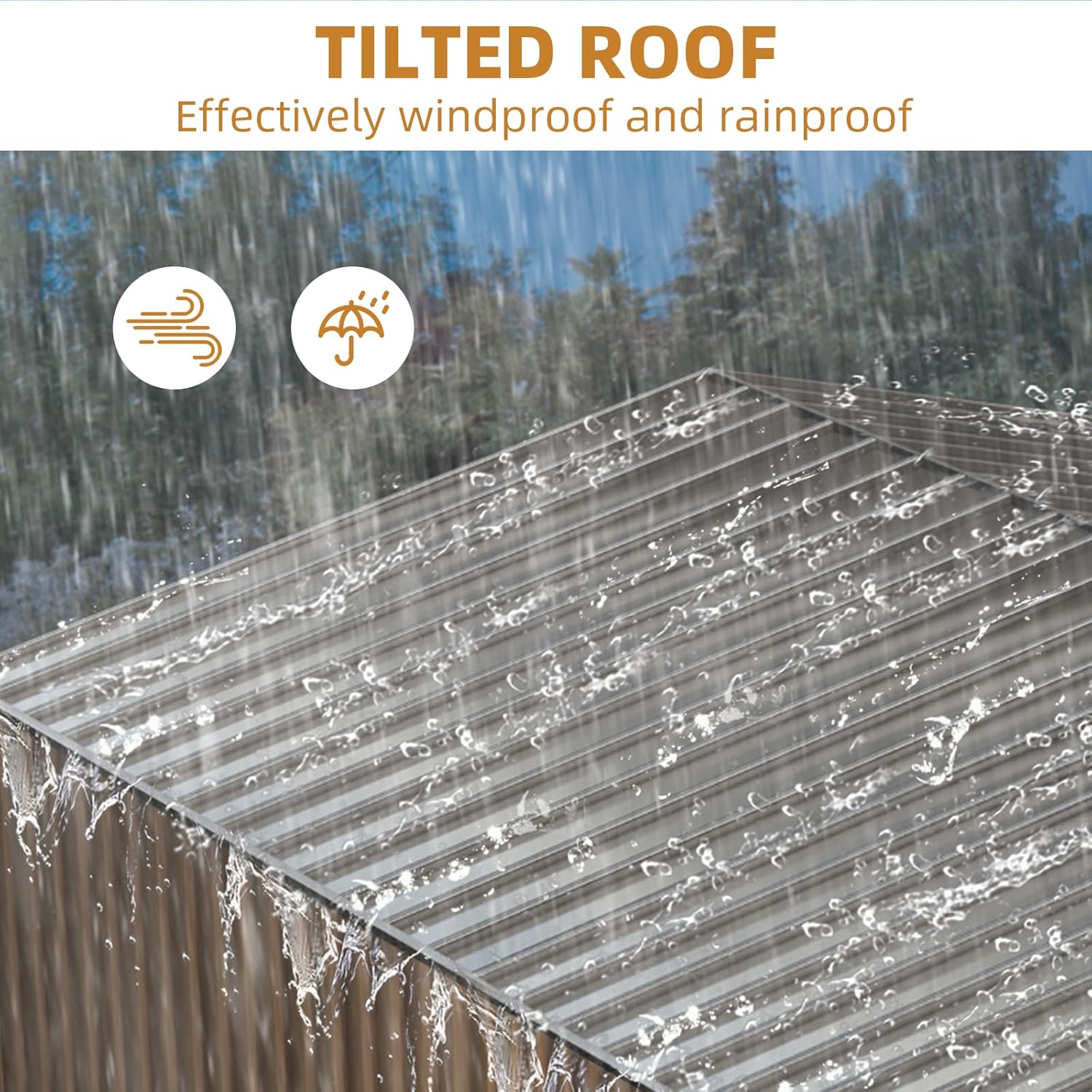 - Weatherproof & Damp-Resistant: The weatherproof garden shed features a sloping roof to prevent water pooling and galvanized steel panels that resist rust, rain, and UV damage. Proper ventilation reduces condensation, keeping stored items dry.