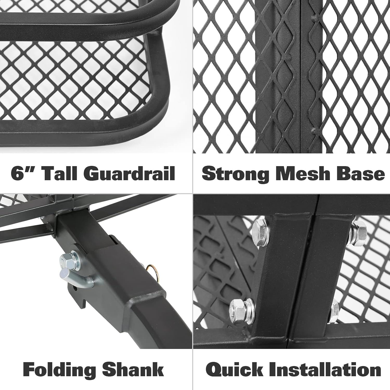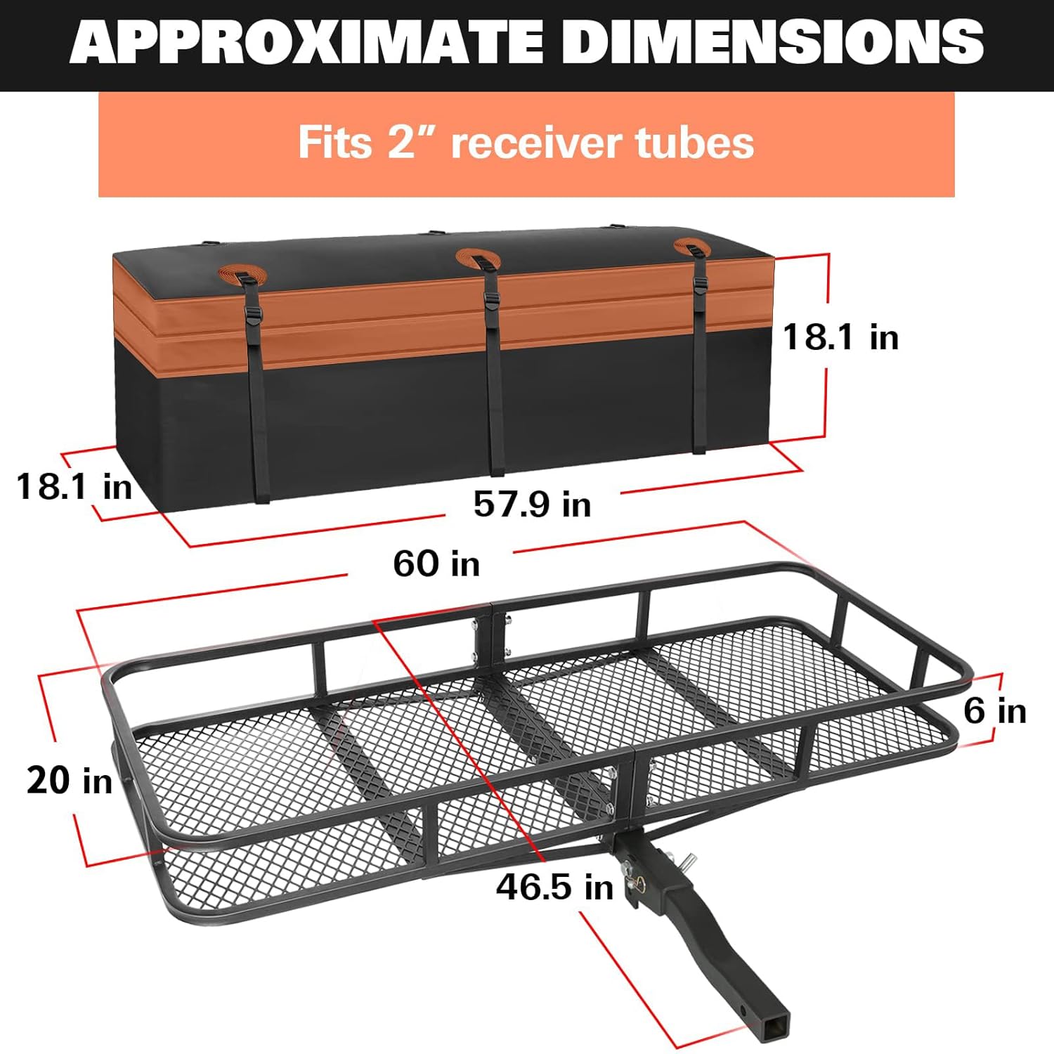 - Overall Dimensions: The hitch cargo carrier measures 60" (L) x 20" (W) x 6" (H), providing plenty of space for your gear. Itβs perfect for camping, road trips, or moving, ensuring you wonβt have to worry about running out of storage space.